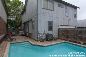 Hurry! Wonderful 2-story garden home with a private backyard featuring an in-ground pool! Large kitchen has breakfast bar and lots of storage & counter space. Great curb appeal with tropical landscaping. Lovely living room has fireplace for those chilly nights. All bedrooms are very generous in size. Rear entry garage. Northside School District. Check out this convenient North West location, close to IH-10, USAA and medical center. Welcome home!